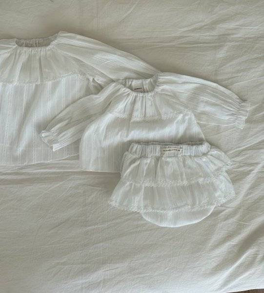 Aceste blomersuri tip fustiță sunt piese adorabile, create pentru a adăuga o notă de eleganță garderobei celor mici. Designul se remarcă prin volanele suprapuse decorate cu dantelă fină, oferind un aspect vaporos și festiv.