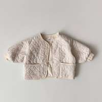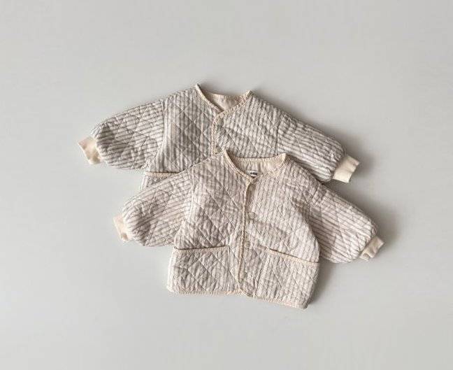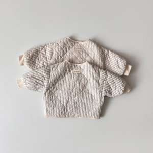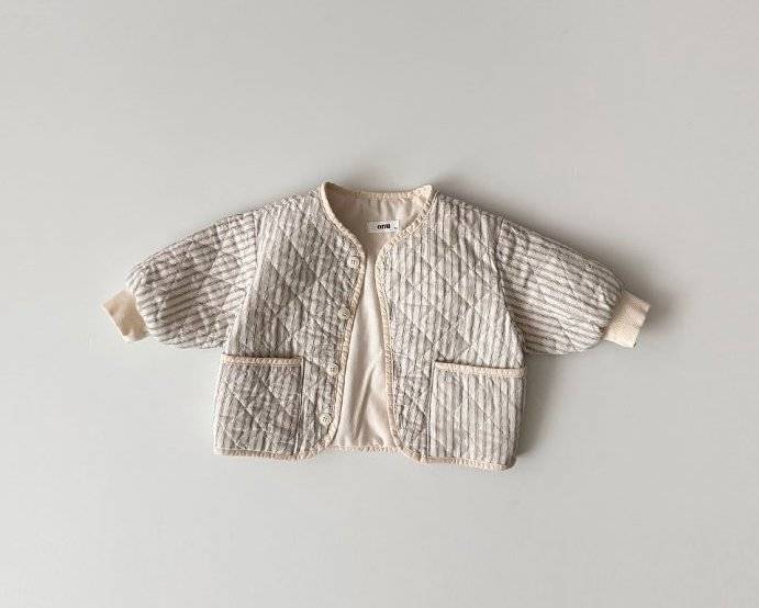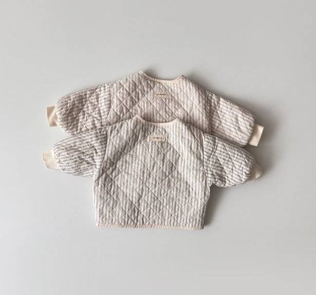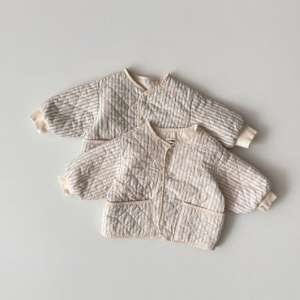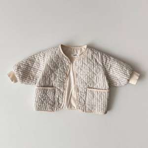 Aceste jachete matlasate pentru copii sunt piese vestimentare pline de farmec, create pentru a oferi căldură și un stil clasic în zilele răcoroase. Designul se remarcă prin textura lor geometrică tip „romburi”, pusă în valoare de un model delicat cu dungi fine, care adaugă o notă retro întregului ansamblu. Realizate dintr-un material dens și moale, adesea din bumbac cu umplutură ușoară, jachetele prezintă o croială lejeră ce permite purtarea pe deasupra altor hăinuțe. Marginile și manșetele sunt finisate într-o nuanță contrastantă de crem, oferind un aspect îngrijit, în timp ce buzunarele frontale spațioase sunt ideale pentru a încălzi mânuțele sau pentru a păstra mici jucării.