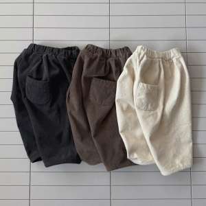 Pantaloni pentru copii cu croială oversize, realizați din catifea reiată, cu interior din fleece pentru un plus de confort și căldură. Talie elastică pentru o potrivire lejeră și libertate de mișcare. Ideali pentru sezonul rece, combină un stil modern cu funcționalitate.